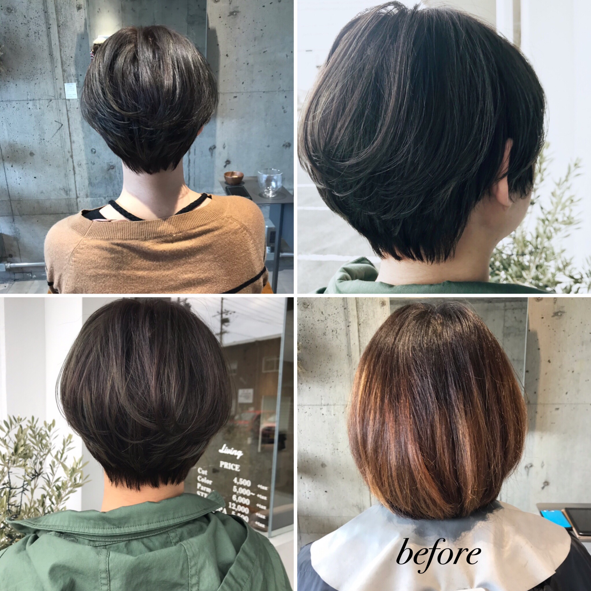 ショートに抵抗がないということで、綺麗な首ラインを見せながら春流行するカーキ系のカラーでハイライトを入れてみました。