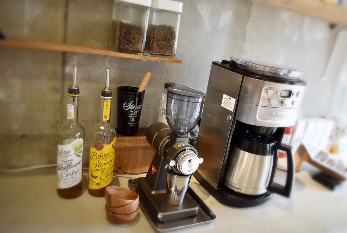 まずはコーヒーなのですがゆったりと香りを楽しんでいただくために一杯づつその場で豆を挽いてからお入れしています