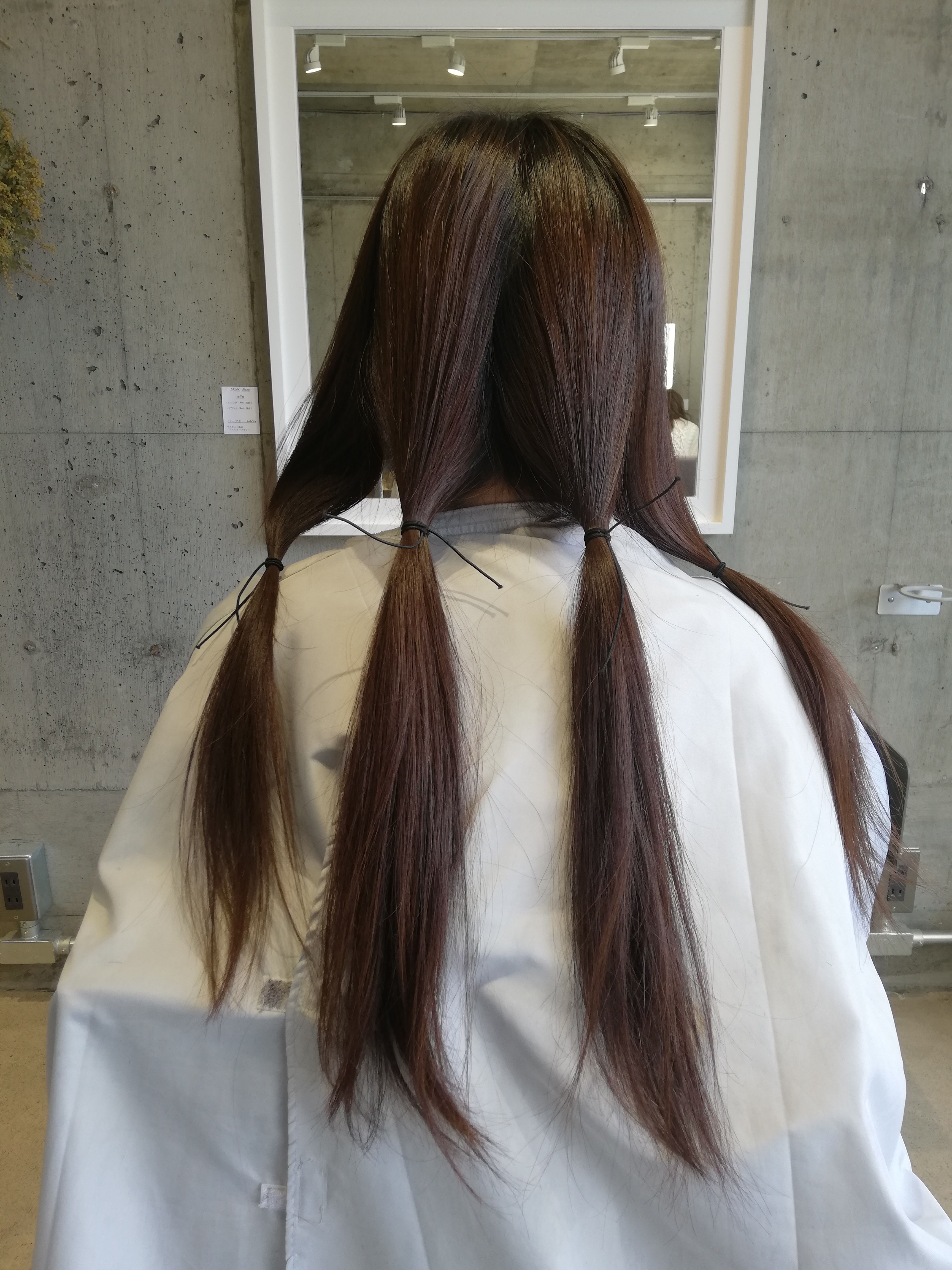 このような形でカットして送らせていただいてます。寄付する髪の長さが足りるかなと心配されていましたが15センチ以上あればシャンプーやトリートメント、カラー剤などの「評価毛」や、私たち美容師の「練習用ウィっグ」として転売してメディカルウィっグ製作の費用の一部になるそうです^^パーマやカラーをしていても極端にダメージしてなければ大丈夫みたいです!またわからないことがありましたらご相談くださいね♪Miki